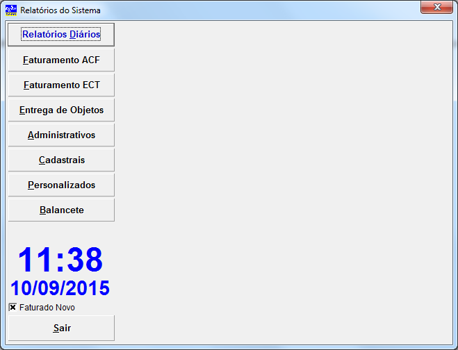 Neste tópico serão apresentados os relatórios do sistema. Para acessar este menu, tecle "ENTER" sobre o botão relatórios do menu principal.